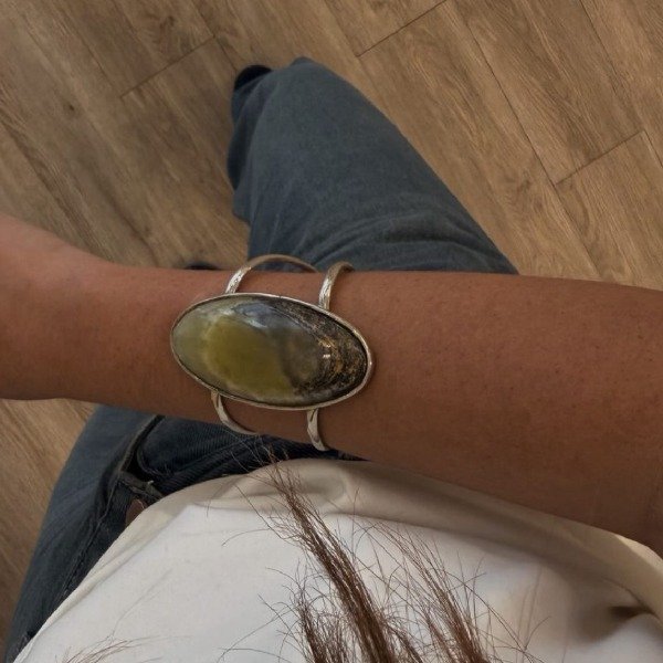 Brazalete alpaca & cuarzo verde